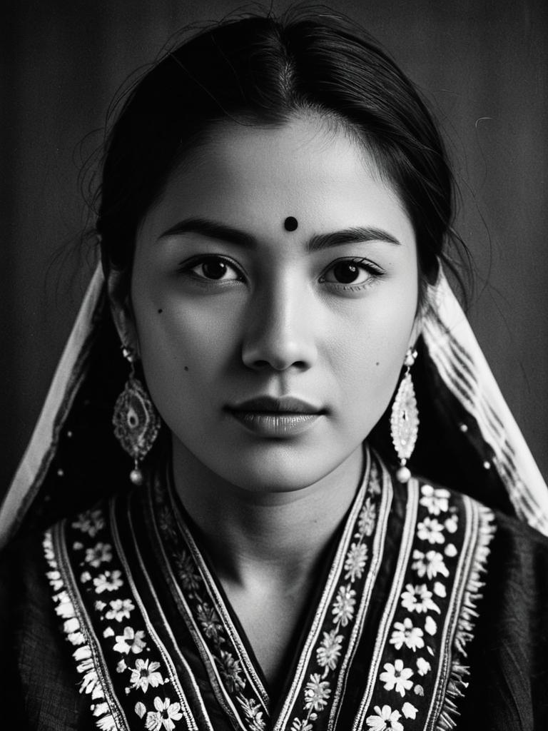 Woman in Traditional Dress, photorealistic cultural portrait, cinematic realism