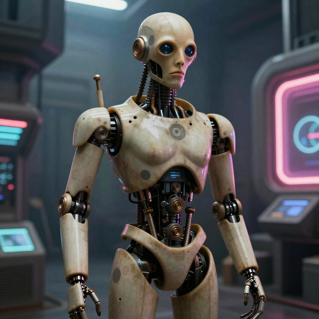 Vintage Cyborg in Neon Futurism