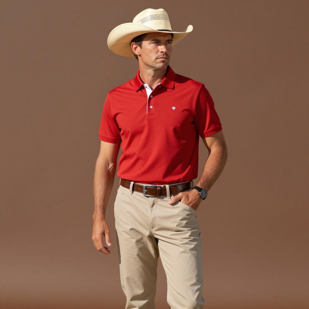 Stacked jeans man costume, full body photograph, man standing, full frontal, cowboy hat, brown leather hat, light blue denim jacket, red plaid shirt underneath, blue jeans, brown leather belt, brown leather shoes, light gray background, neutral lighting, casual outfit, relaxed posture, neutral expression, slightly rugged, mid-30s, slightly tanned skin, short brown hair, medium build, small beard, no accessories except for a watch on left wrist, studio shot, minimalist background