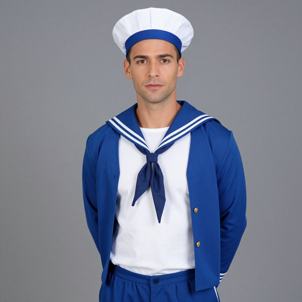 Sailor Captain Costume Man, sailor in a white shirt and blue jacket posing for a picture