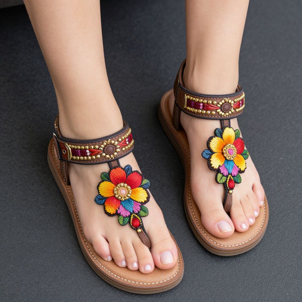 Summer Woman Colorful flowers bohemian ethnic style sandals