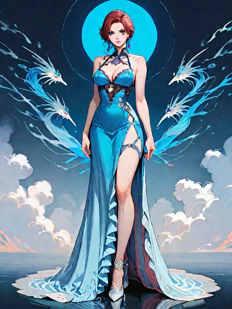 Full body, 1girl, dark_fantasy, nighttime, big boobs, fog, night mist, Romantic boudoir velvet chemise, deep burgundy, plush velvet material, plunging neckline, sheer lace panels, thigh-high slit, coordinating robe, billowy sleeves, intricate scalloped edges, soft draping, opulent feel, timeless elegance.