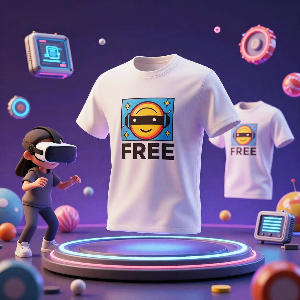 An imaginative free tshirt maker concept showcasing virtual reality design session, user customizing tshirt graphics in floating 3D space, neon accents, futuristic gadgets, creative energy, vibrant and dynamic environment, 8k resolution digital art.