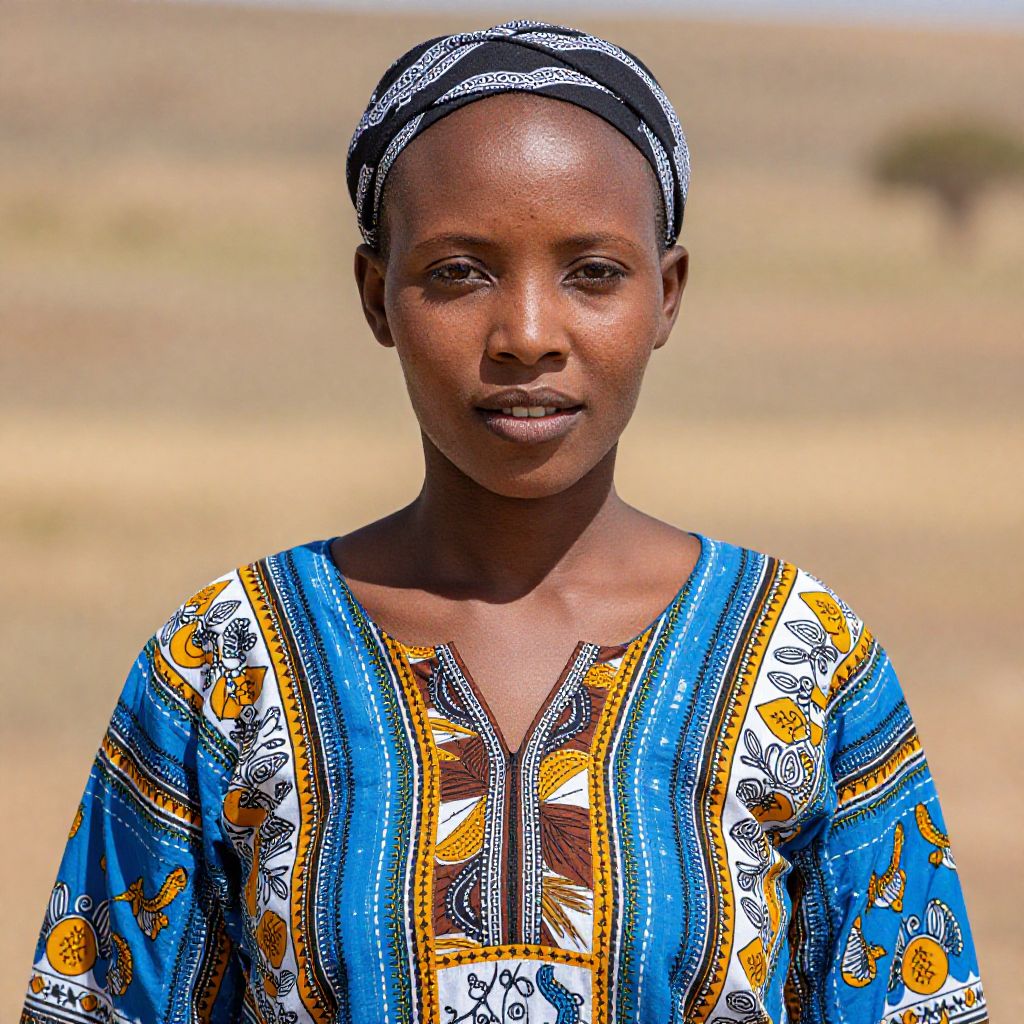 "Tswana Dress, a close up of a woman wearing a colorful dress and a turban"