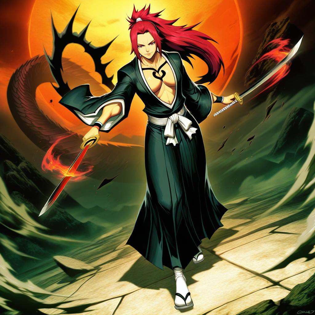 Illustration of Abarai renji, bleach in the style of Genzoman