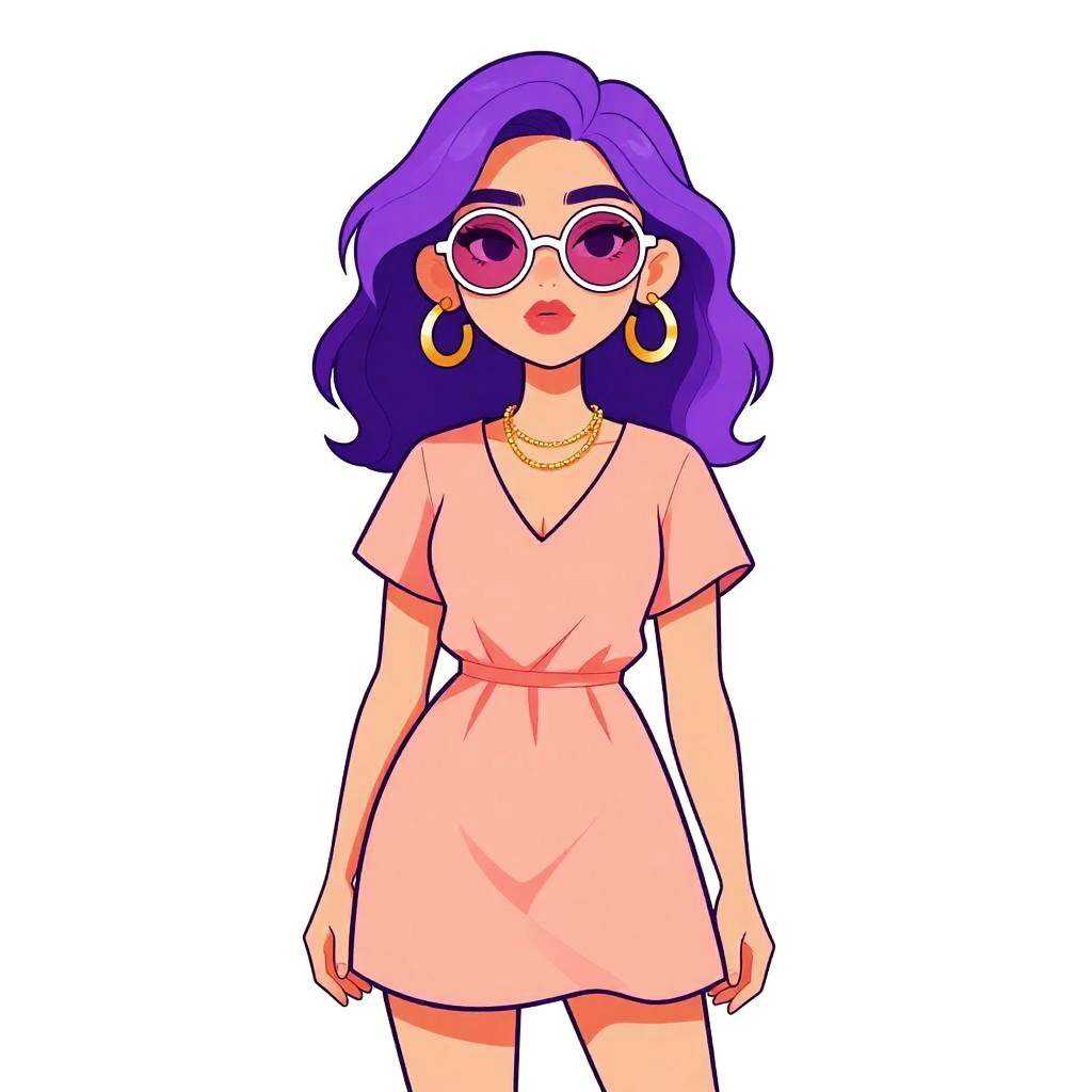 Woman with pretty face and pretty hair. Woman, casual chic, black floral print romper, short sleeves, lace trim detailing at the neckline, cinched waist with drawstring, high-cut shorts, layered necklaces, tousled hair, simple white background. --sref 1467