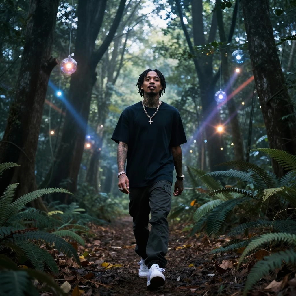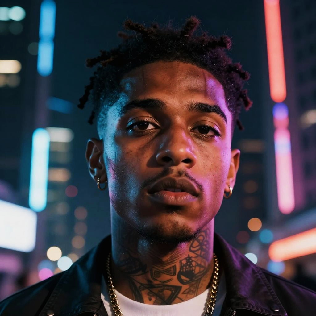 Xxxtentacion alive in a modern art style, abstract shapes and bold colors surrounding him, symbolic tattoos glowing, deep emotion captured in his eyes, dynamic composition
