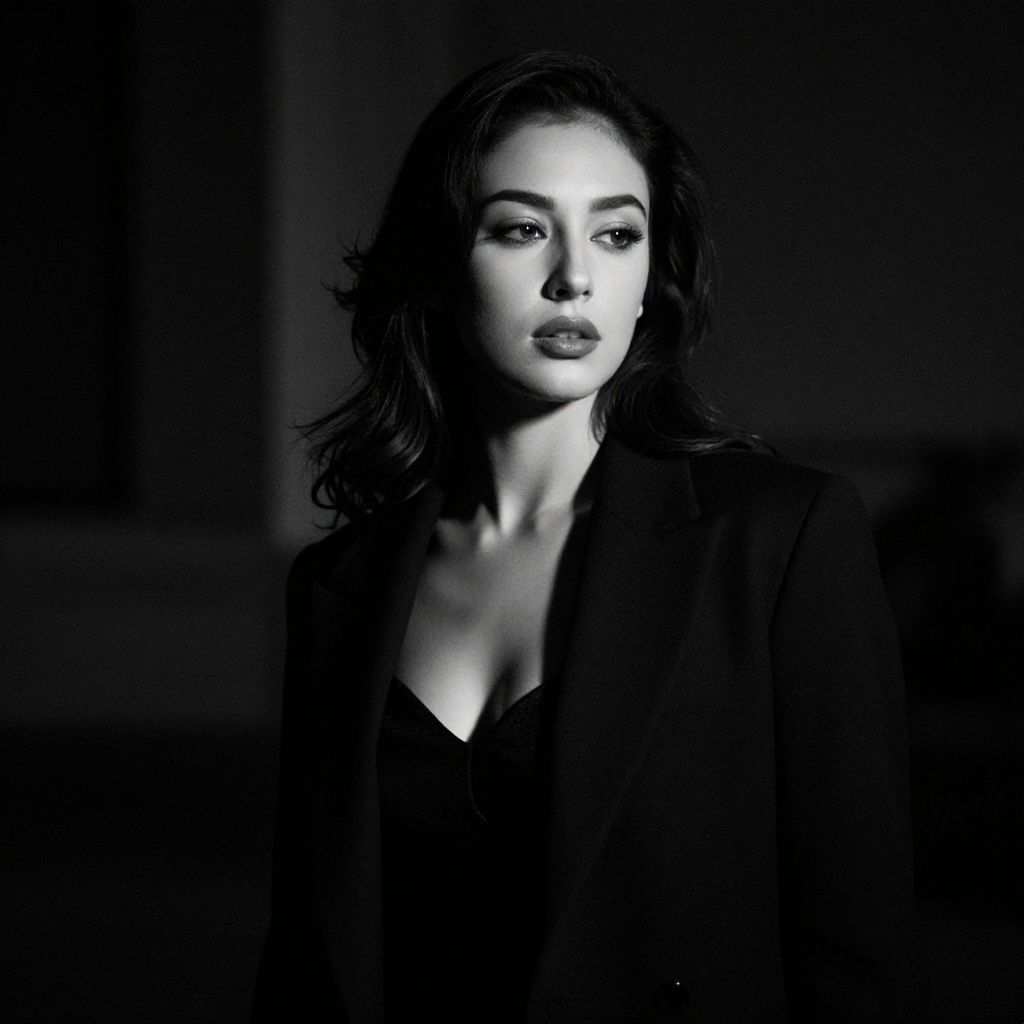 Dramatic Black and White Brunette Portraits