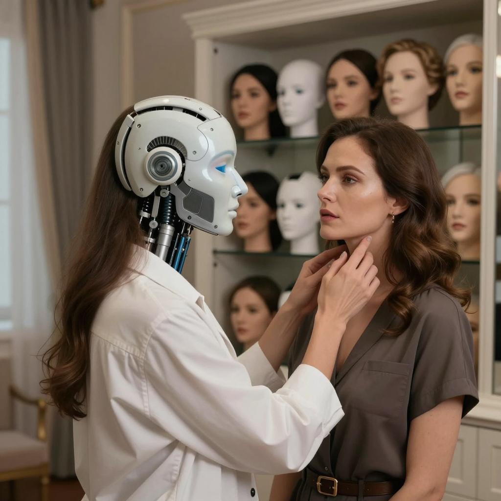 Robot Waiter Serving Food to Woman in Art Deco Restaurant