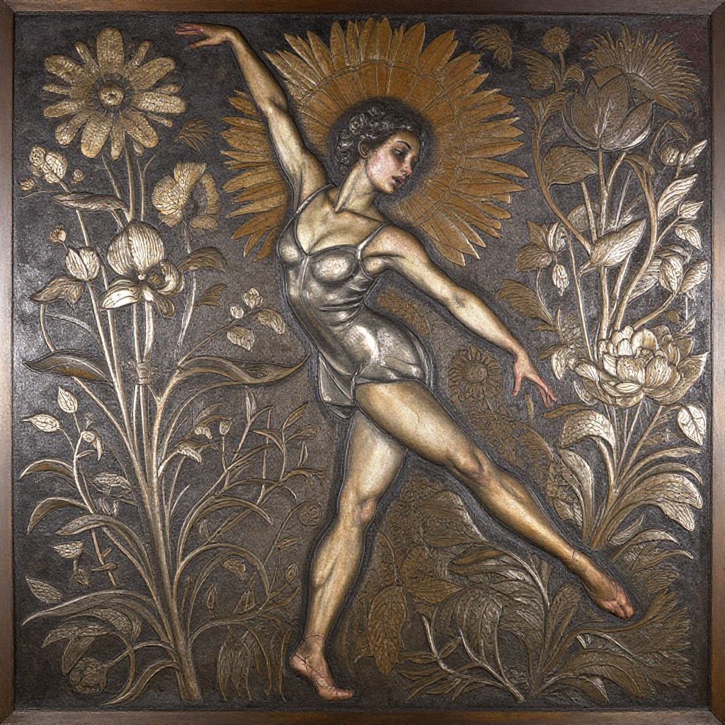 Metal the image is of a woman in a ballet performance, in the style of intense movement expression, flora borsi, tintoretto, poignant,