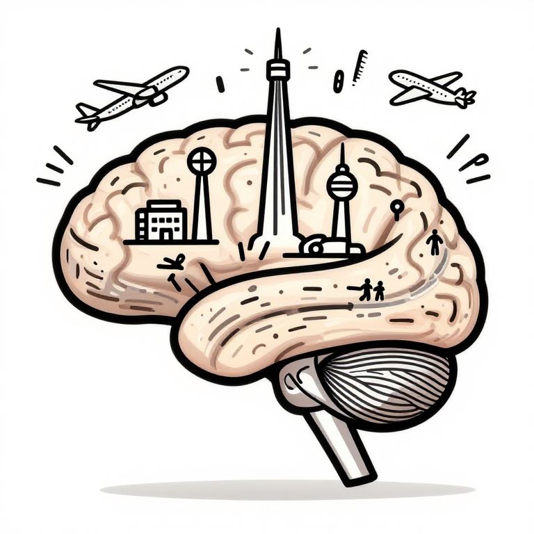 Keith Haring a brain representing AI, but the brain is composed of airplanes, flight towers, tarmacs and travelers,
