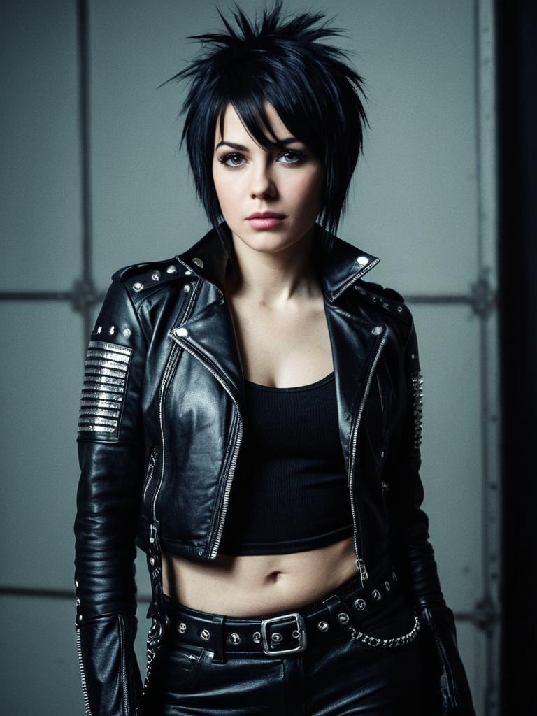 Woman in Joan Jett Outfit, studio fashion-inspired cosplay portrait, cinematic light