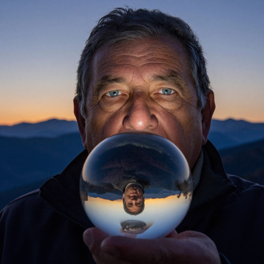 Hyperrealistic Aged Man in Crystal Ball