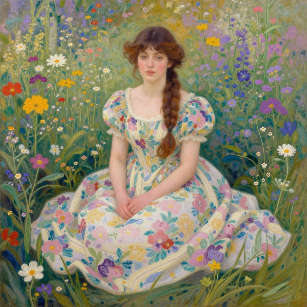Symbolist Woman in Dreamlike Wildflowers