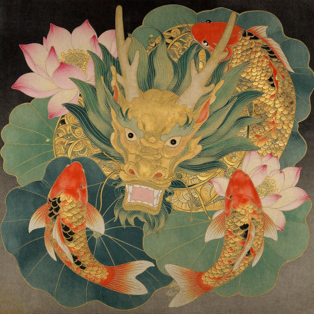 Elegant Edo-Style Dragon and Koi Art