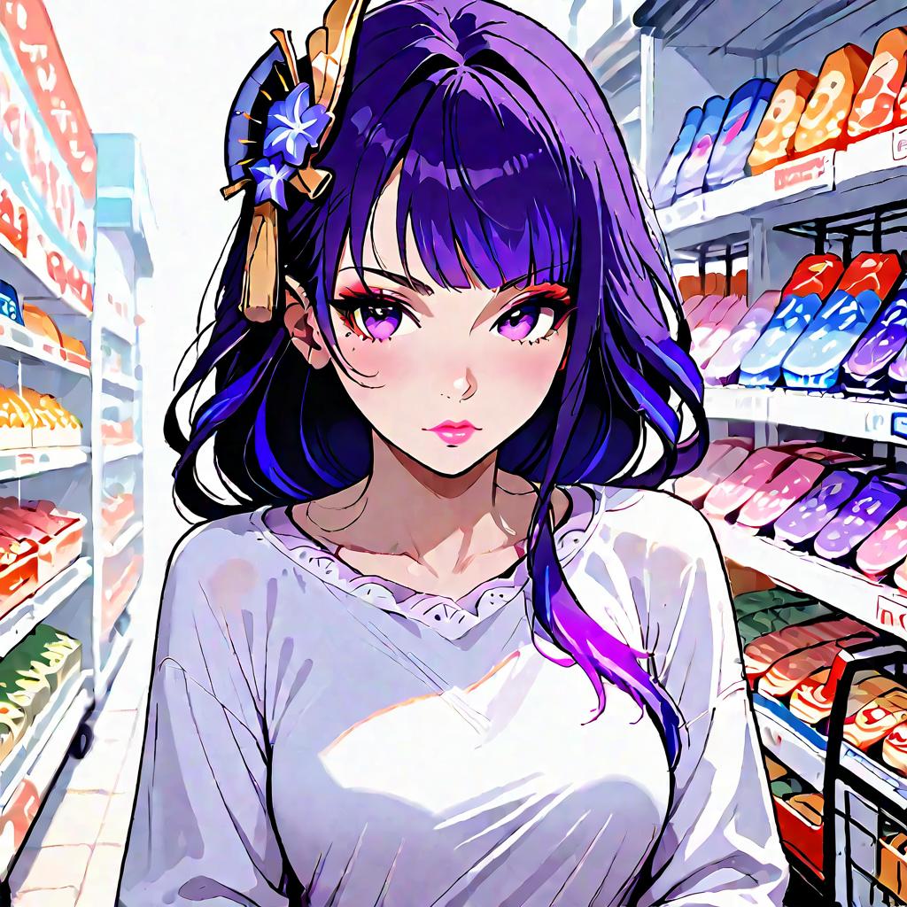 Anime Girl Shopping with Green Hair