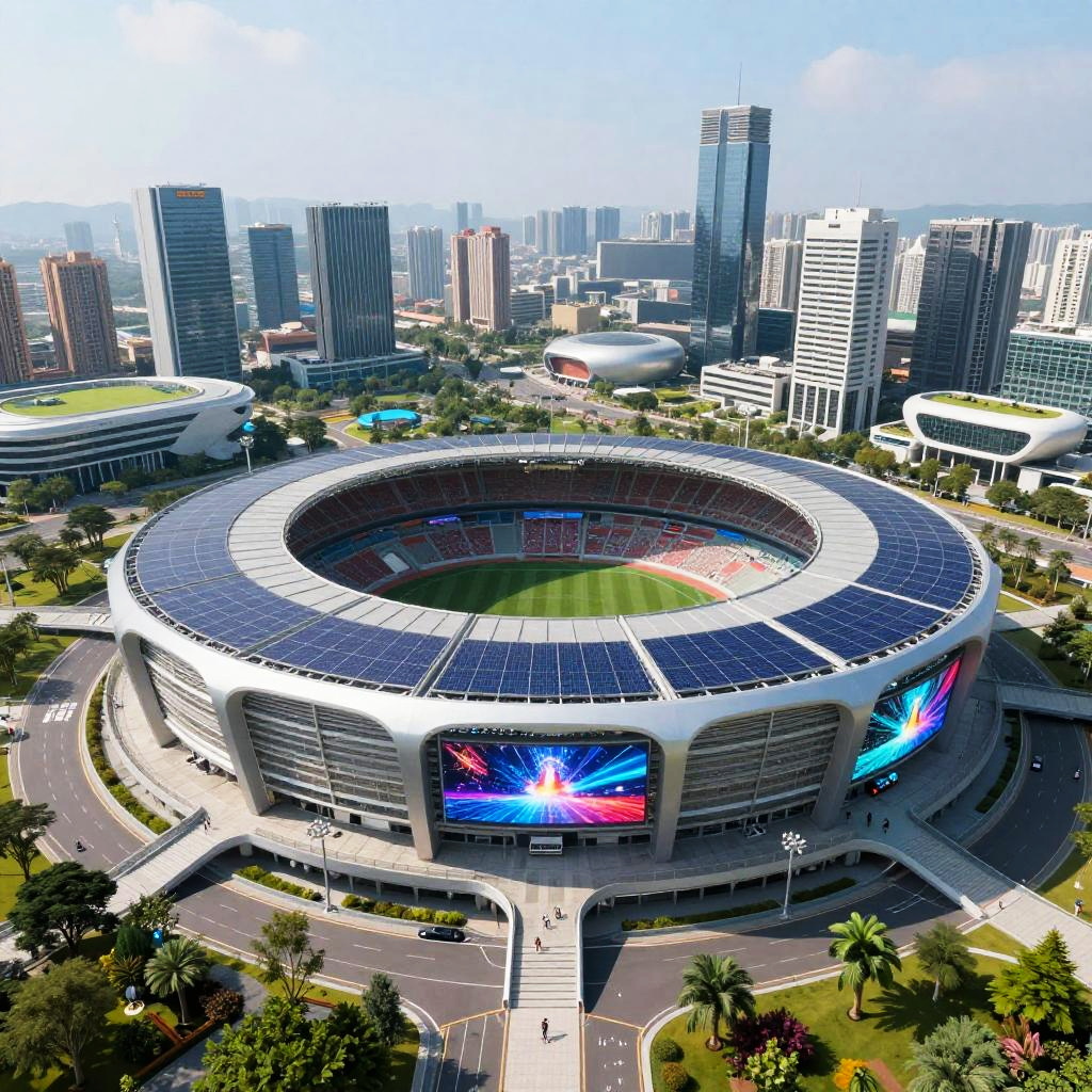 Futuristic Eco-Friendly AI Stadium Panorama