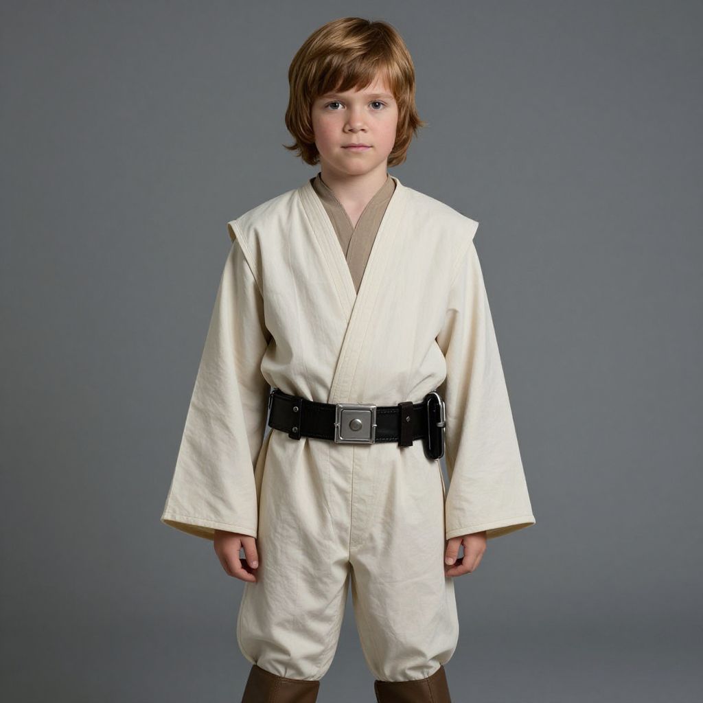 Young Luke Skywalker Costume, young boy in a robe posing for a picture