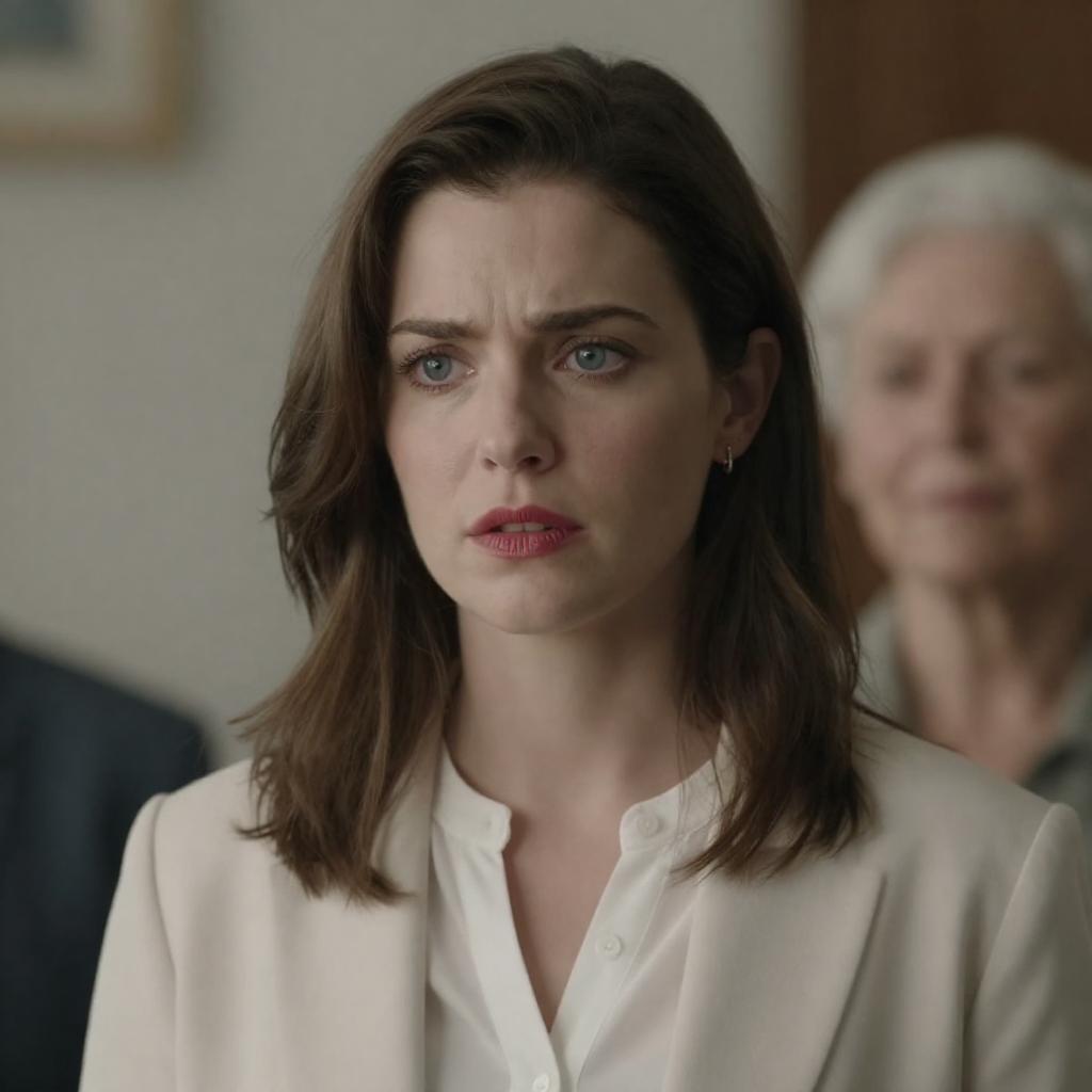 Concerned Woman in Blood-Stained White Shirt