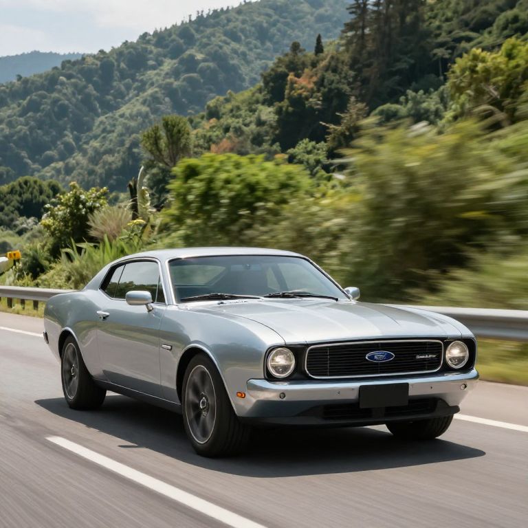 Ford Mustang customize, rugged off-road Mustang with lifted suspension, mud splattered custom tires, matte military green paint, set in a dense forest trail with dramatic natural lighting