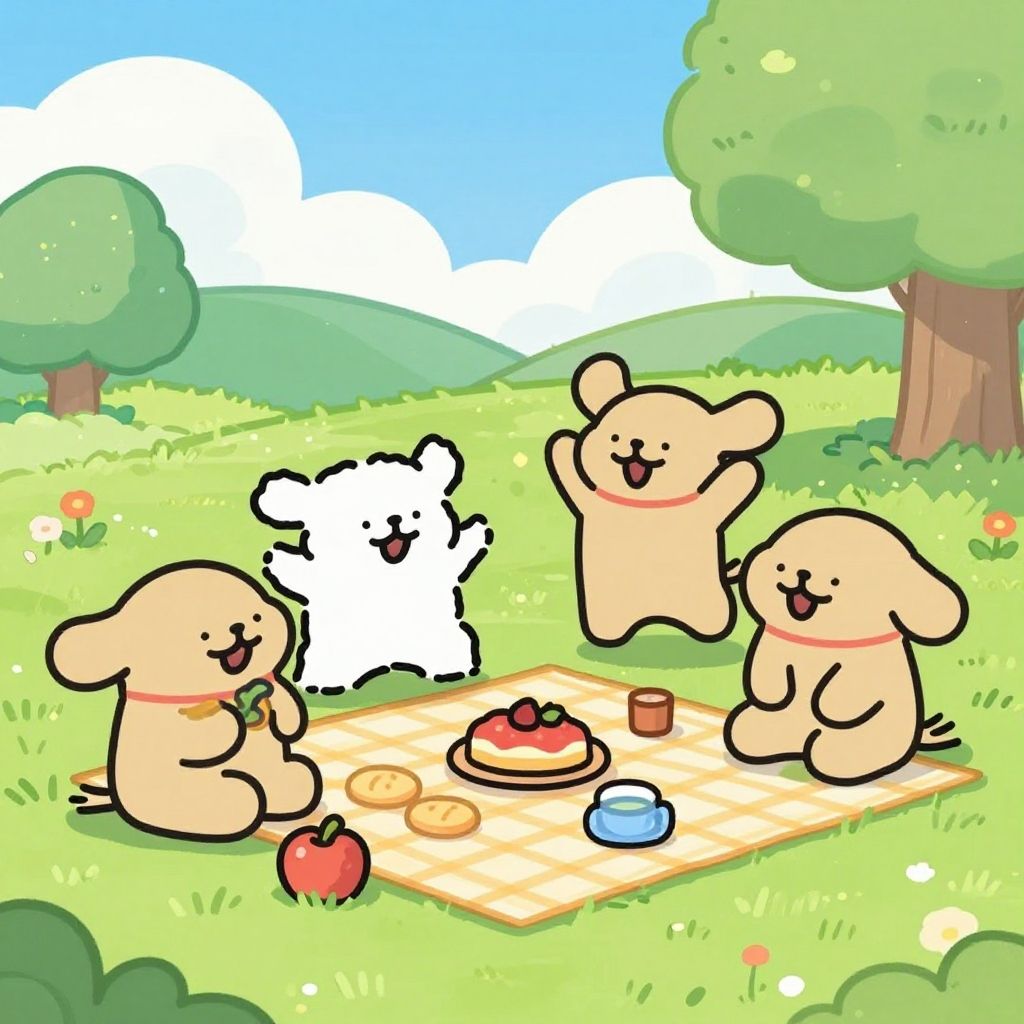 Cheerful Cartoon Friends Picnic Scene