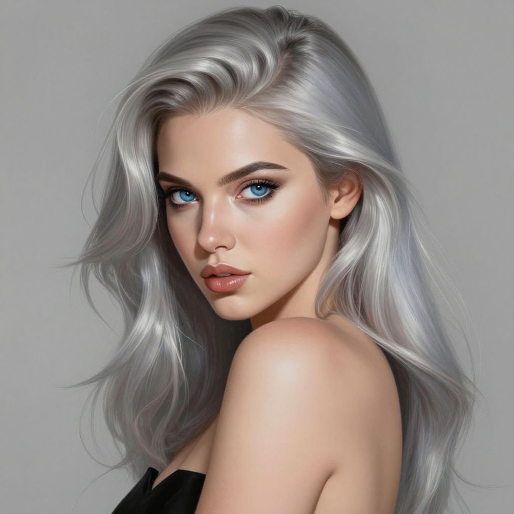 This vivid illustration captures a woman with striking features, highlighted by a vibrant color palette of orange and gray. The bold brush strokes and smooth lines contribute to a modern, dynamic style that emphasizes the subject's confidence and beauty.