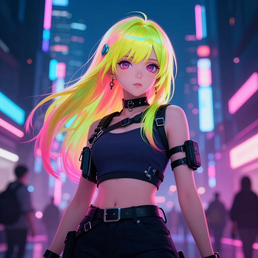 Confident Anime Trans Girl in Cyberpunk City