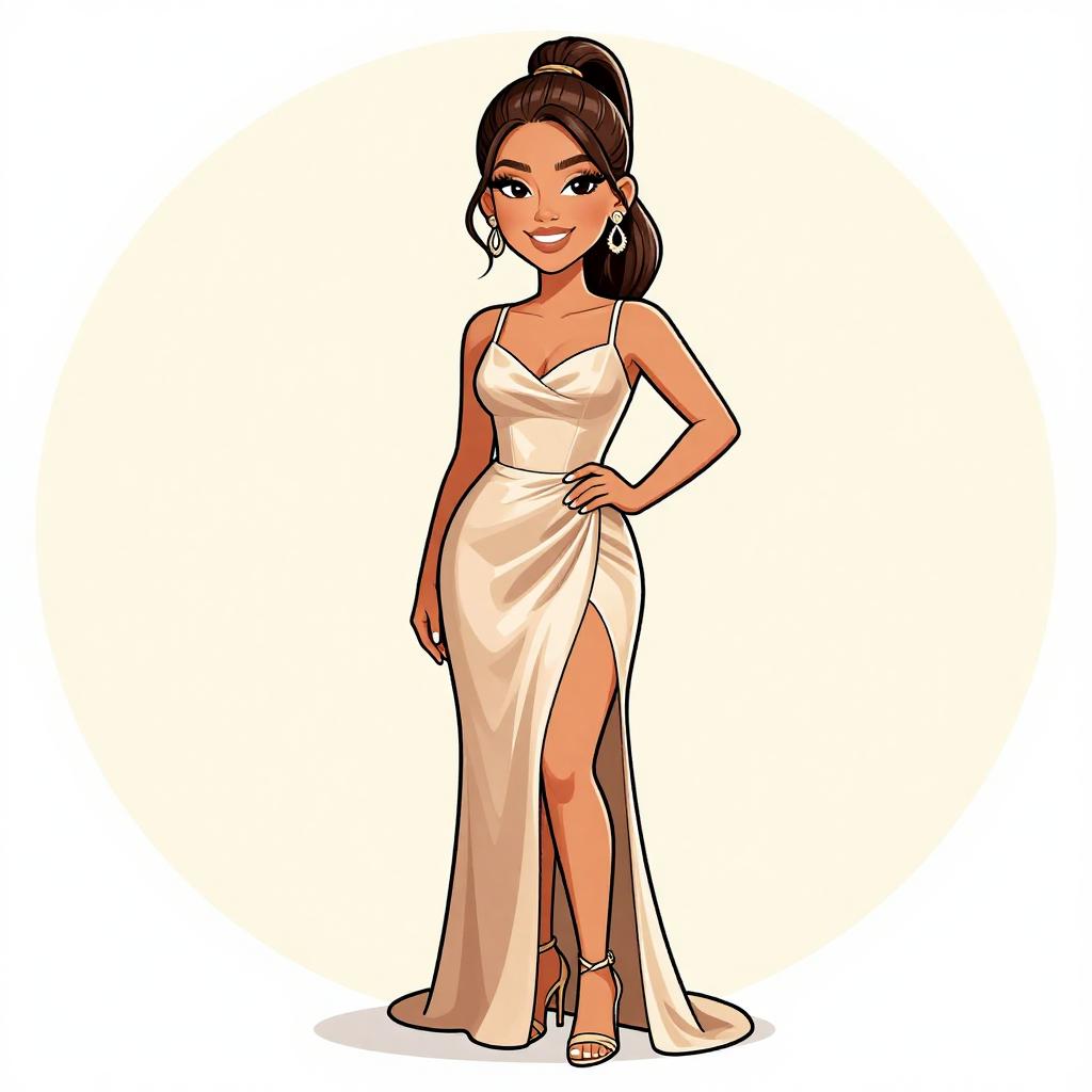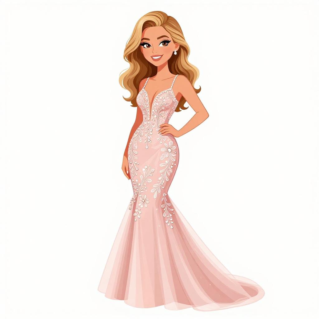 Woman with pretty face and pretty hair. smiling Woman, glamorous, shimmering metallic silver gown, pleated texture, sleeveless, fitted bodice, round neckline, full-length ball skirt, sparkling detail, silver wristwatch, wavy blonde hair, neutral makeup, photo studio background with a light gradient. --sref 1467