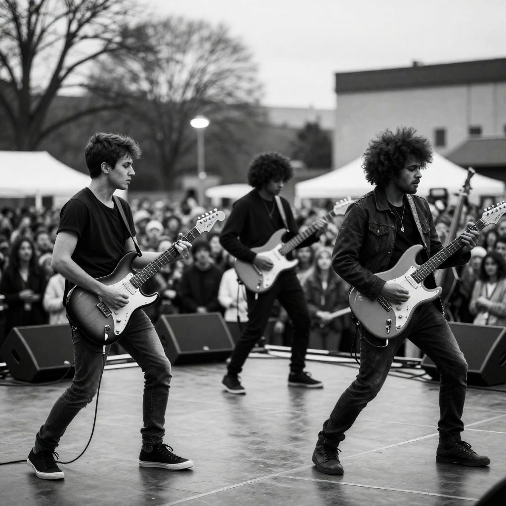Live Rock Band Performance Under Red Lights