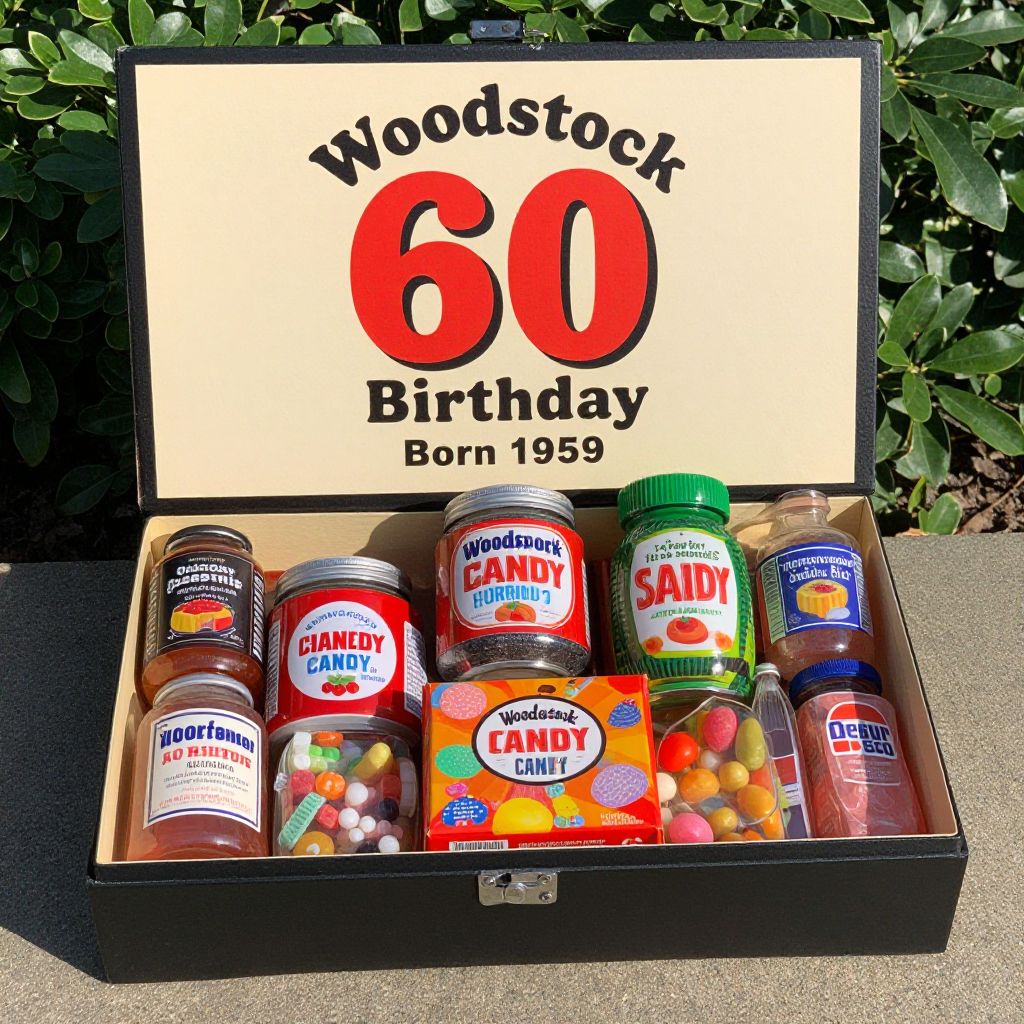 Woodstock Candy ~ 60th Birthday Gift Box Vintage Nostalgic Candy Assortment from Childhood for 60 Old Man or Woman Born 1959