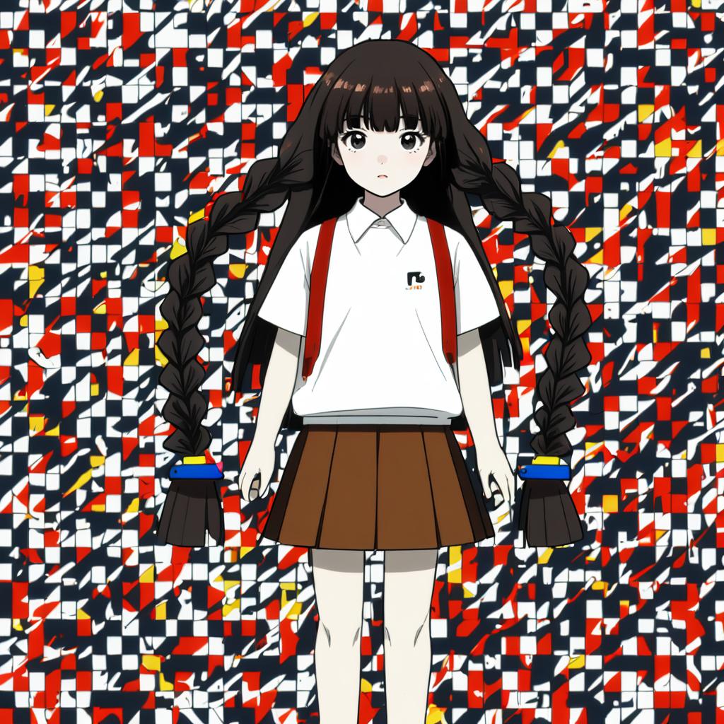 Monoe, yume nikki, 1girl, long hair, black hair, brown hair, twin braids, skirt, by artist hyouuma, anime