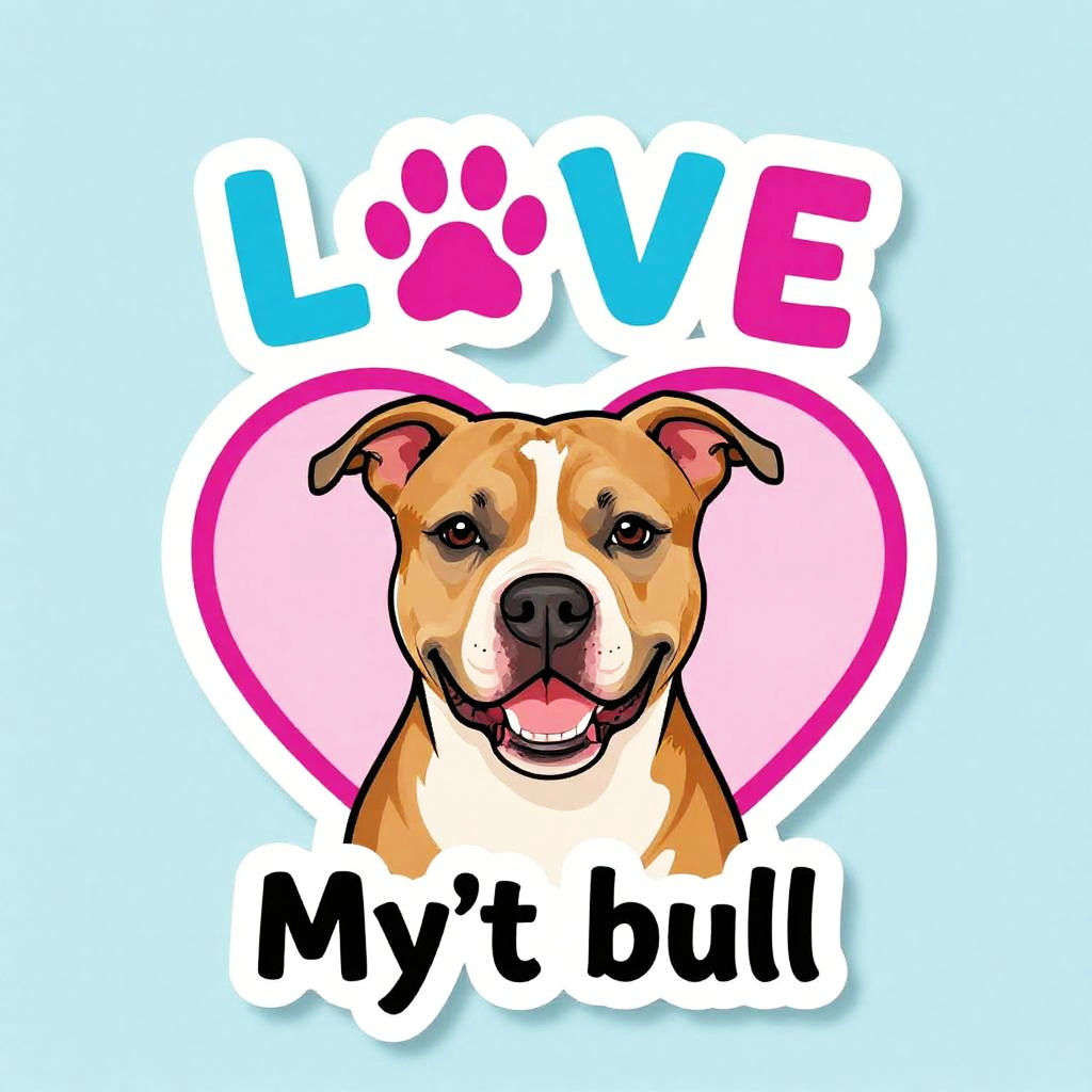 Cute Pit Bull Adore Sticker Design