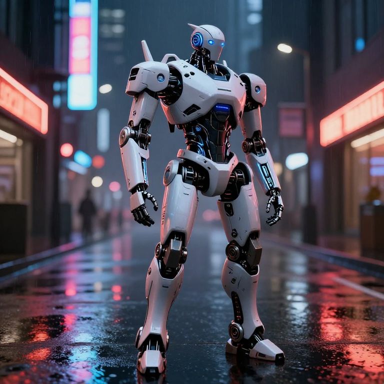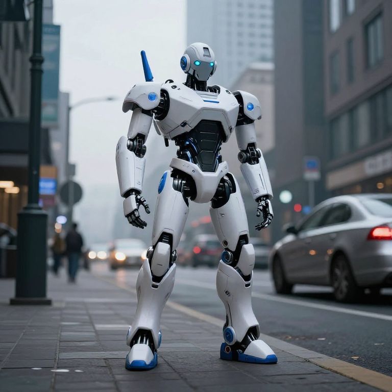 Futuristic Robot on Urban Streetscape