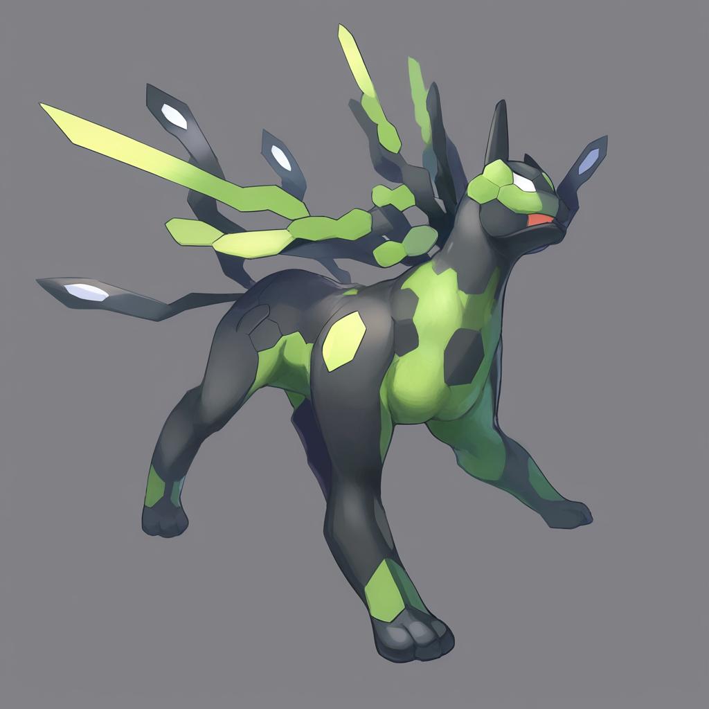 Illustration of Zygarde, pokemon in the style of Huanxiang huifeng