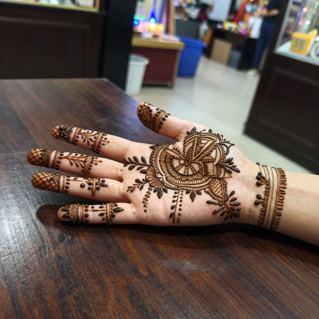 Intricate Black Henna Design on Hand