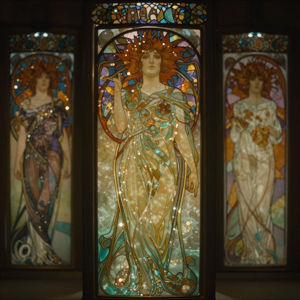 Cinematic film still (Art Nouveau), (Immersive Point of view, clear lines, glossy surface, oily gloss, perfect composition, symmetrically arranged depth of field, dynamic perspective, subsurface scattering), bokeh, decorative, symmetrical, by (((Ren├й Lalique), Aubrey Beardsley, influenced by the works of Alfonse Mucha) and Louis Comfort Tiffany). . shallow depth of field, vignette, highly detailed, high budget, cinemascope, moody, epic, gorgeous, film grain, grainy