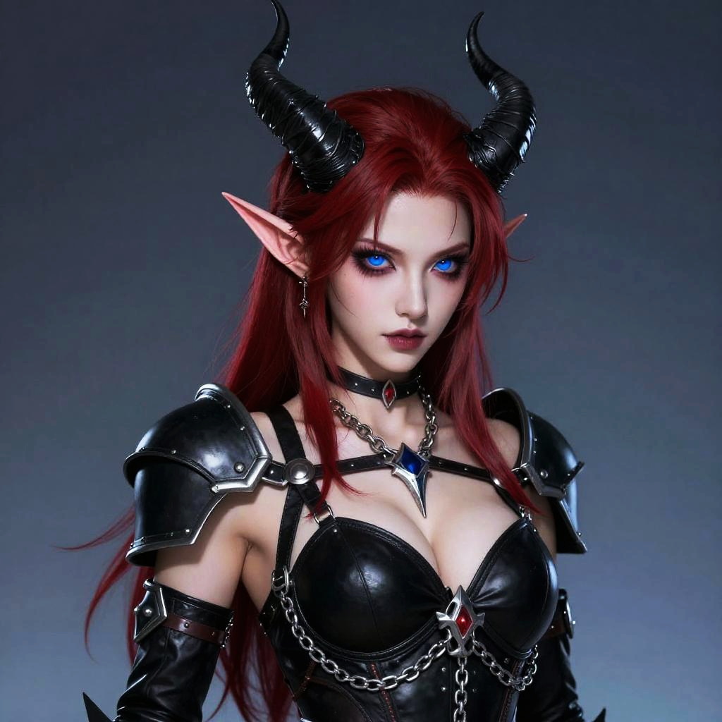 Fierce Female Demon in Leather Armor