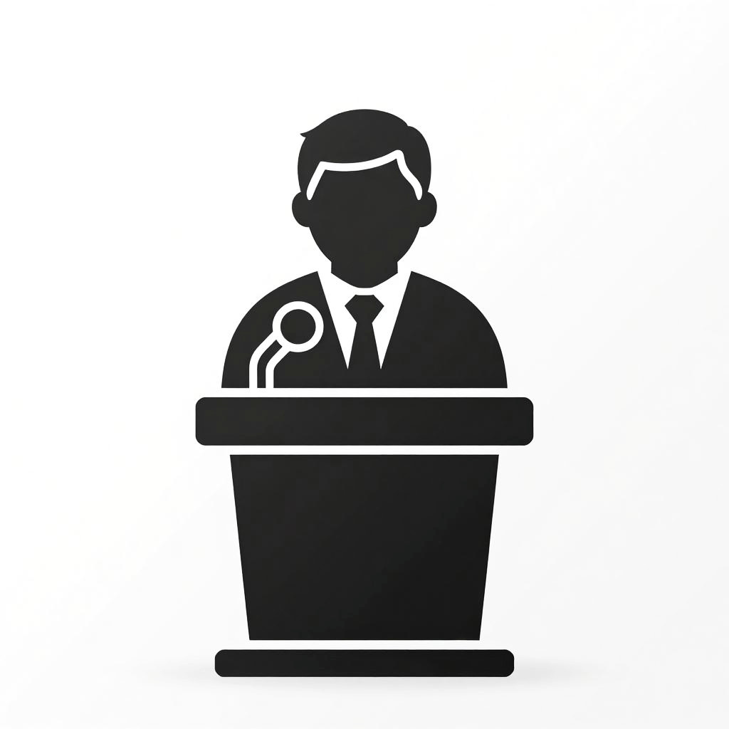 President icon in sleek modern design, bold colors, surrounded by subtle laurel wreath, clean lines, professional and authoritative style, digital vector artwork, high contrast