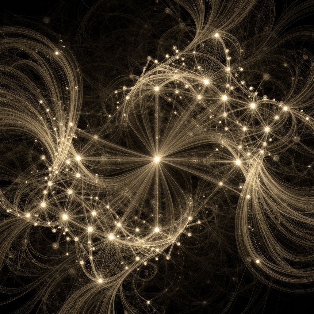Abstract representation of stable diffusion AI in the form of a fractal pattern of interconnected nodes and waves, blending organic and technological elements, glowing edges, futuristic and elegant design, high resolution