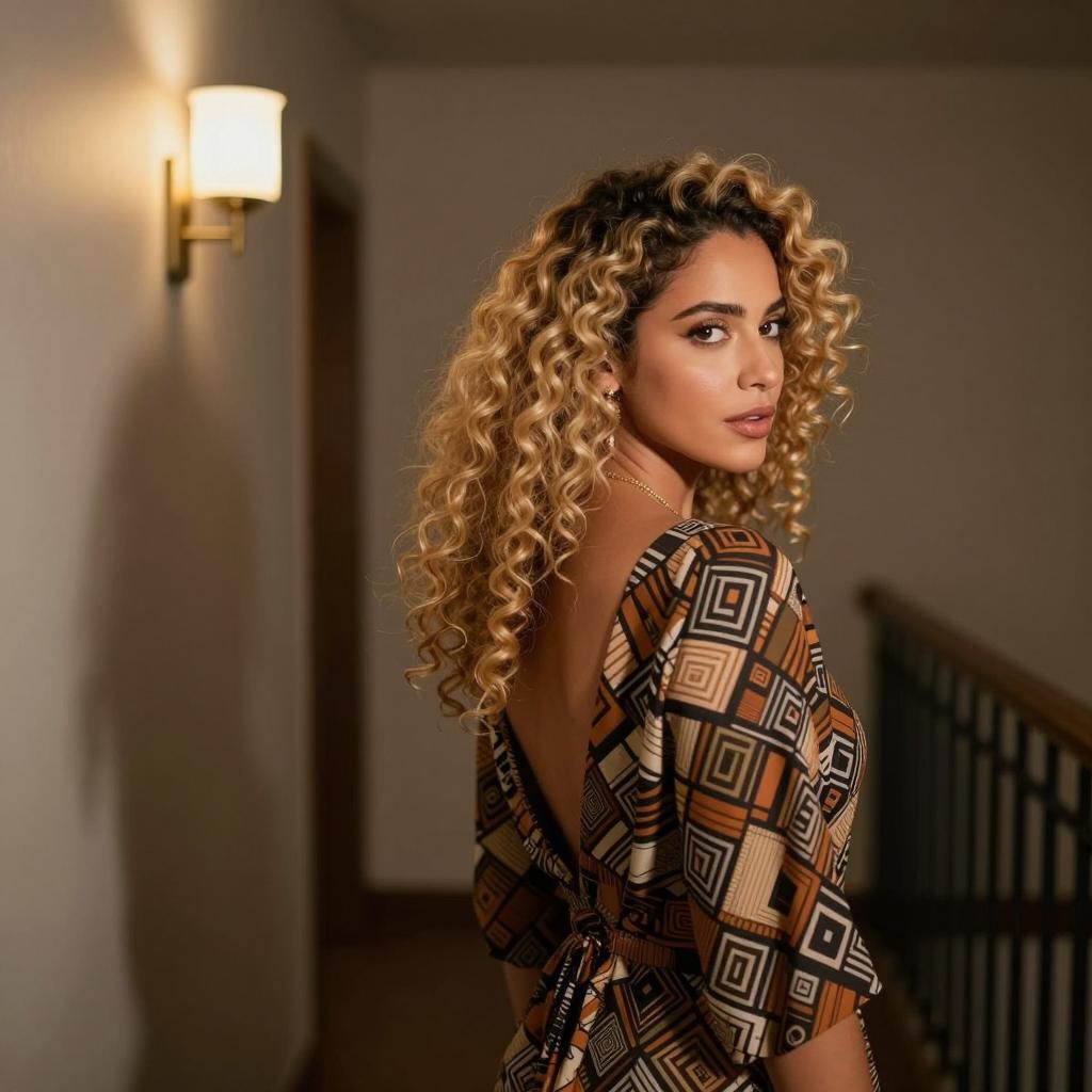 Stylish Woman in Elegant Hallway Scene