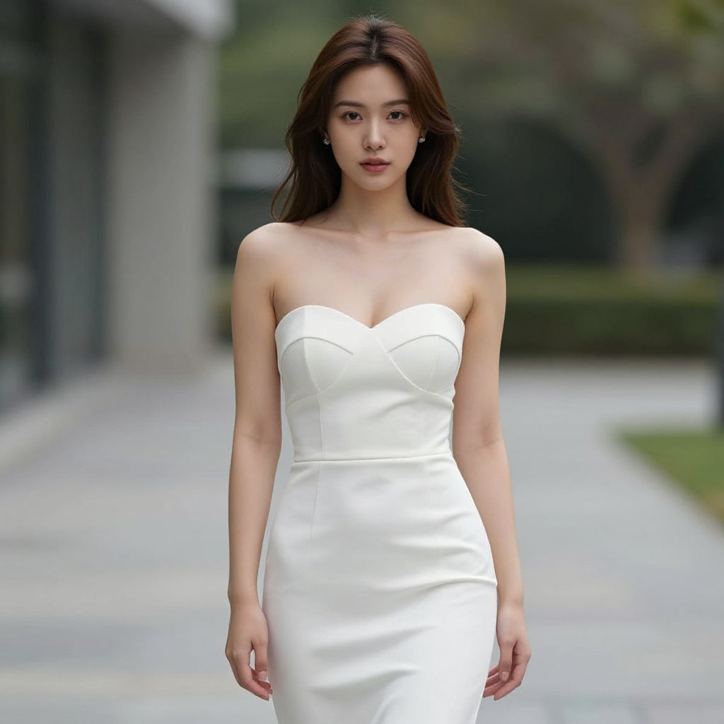 "yellow ice skating dress, 1girl, solo, long hair, dress, long sleeves, brown hair, looking at viewer, gloves, yellow dress, jewelry Realistic photo of casual sexy person with pretty face"