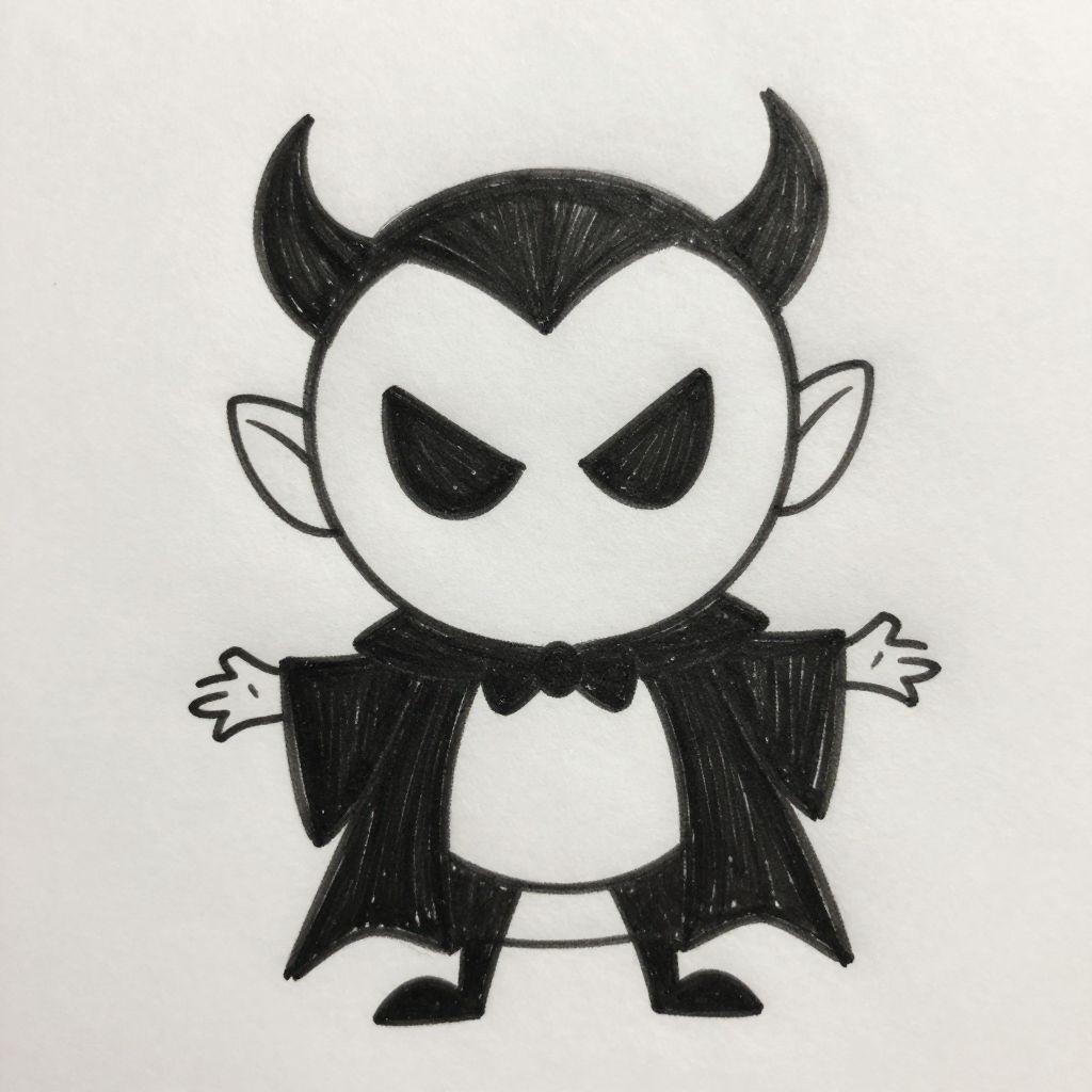 Villain drawings easy prompt showcasing a charming yet evil character in a playful sketch style, smooth flowing lines, basic shapes, and minimal details on a plain background, ideal for easy-to-learn villain character designs.