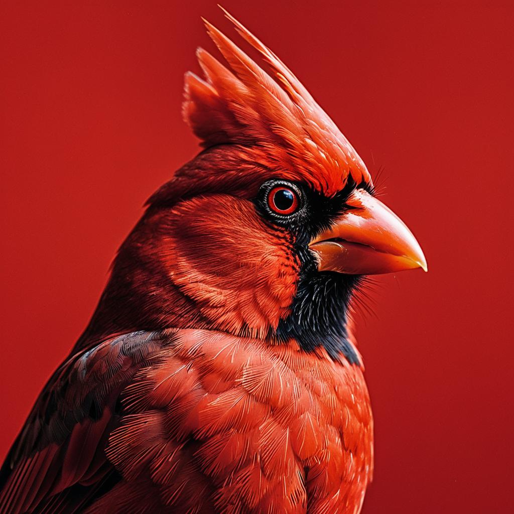 Highly detailed portrait of a vivacious red cardinal in vibrant scarlet tone, inspired by Albrecht Dürer, John Gould, Walton Ford.