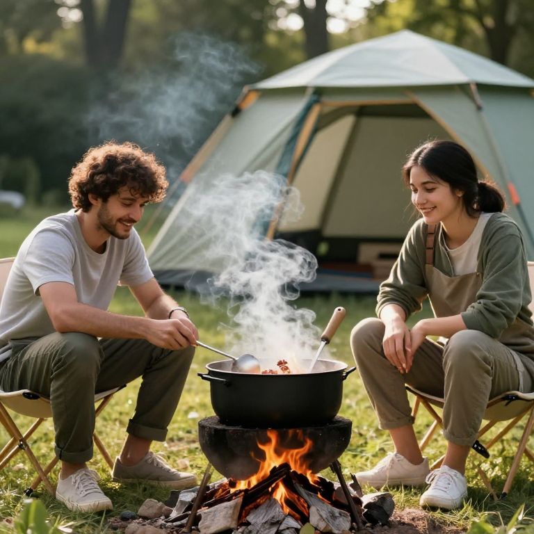 Rustic Campfire Cooking Scene