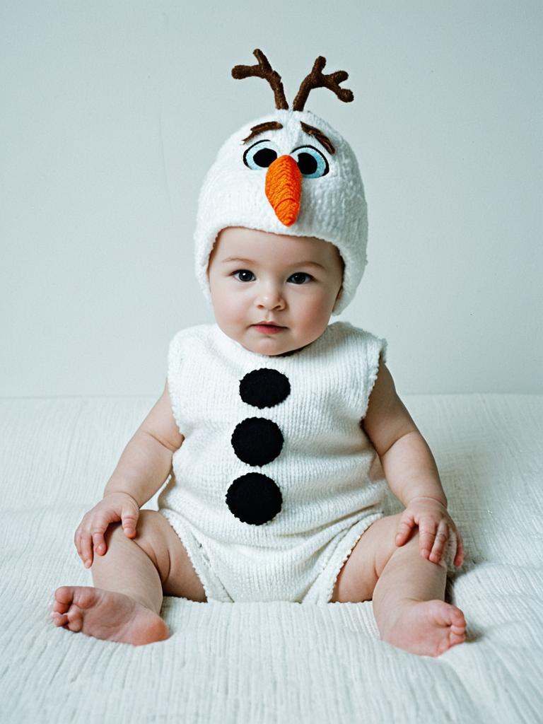 Infant in Olaf Costume, photorealistic soft studio baby portrait