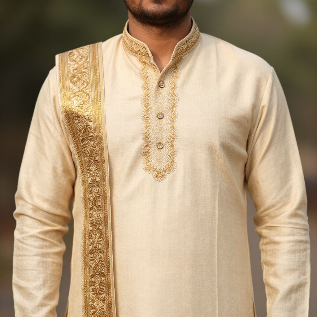 "Traditional Avurudu Dress, a close up of a man in a traditional indian costume"