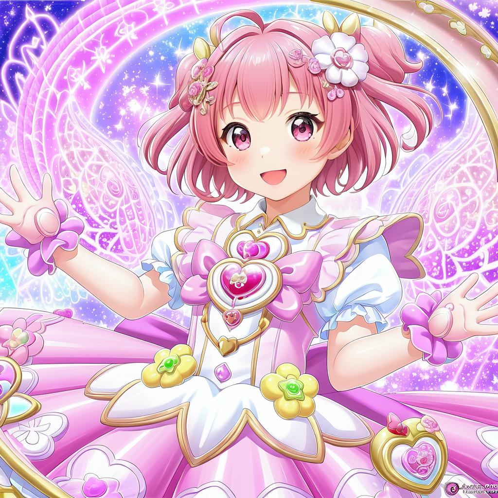 Hanadera nodoka, healin' good precure, 1girl, pink eyes, short hair, pink hair, brown hair, hair flower, hairclip, magical girl, magical girl, by artist torino aqua, anime
