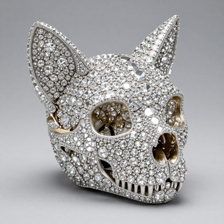 Diamond-Encrusted Cat Skull Art