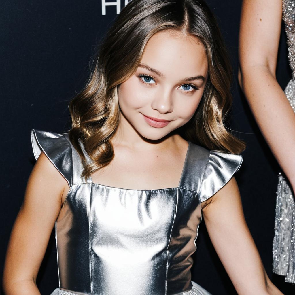 Maddie Ziegler Dance Moms, a close up of a young girl wearing a silver dress and tiable