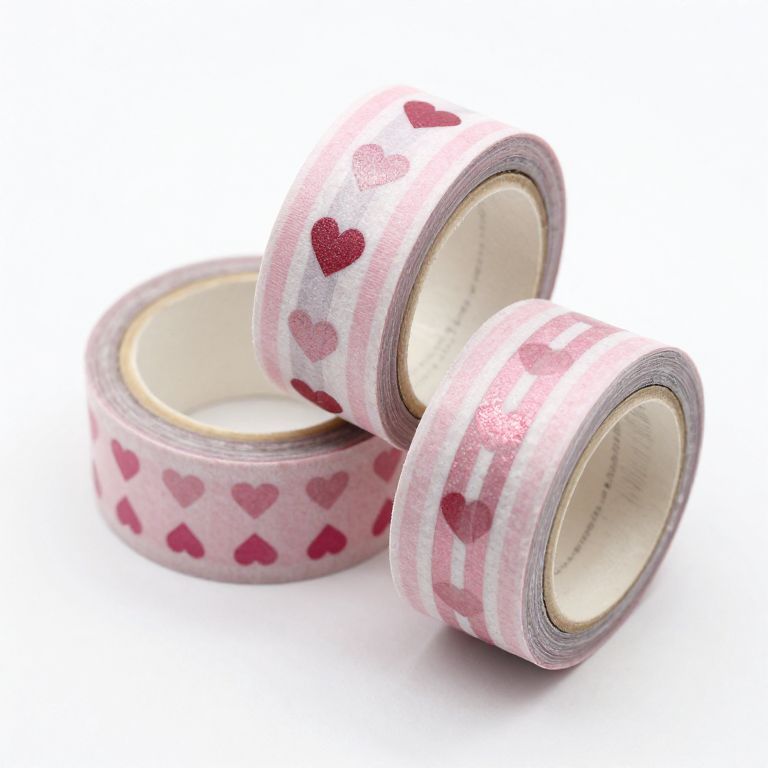 3pcs /Box Pricenss Pink Pearlescent Heart Dot Stripe Paper DIY Hand Account Decorative Washi Tape